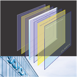 - Điều chỉnh mức độ xuyên thấu qua kính nhờ hạn chế mức độ phản xạ ánh sáng, hình dưới cho thấy 3 mức độ khác nhau về độ trong suốt của tấm kính giúp chúng ta điều tiết sự trong suốt của tấm kính theo ý đồ mong muốn